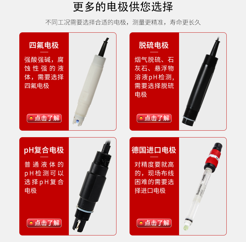 为经济款塑壳电极,响应快、稳定性好,可按照合作方须要改装各种各样温补形号PT100/PT1000/NTC 10K等。广泛应用于火电、化工化肥、冶金、环保、制药、生化食品和自来水等溶液中的PH值或ORP值和温度的连续监测。