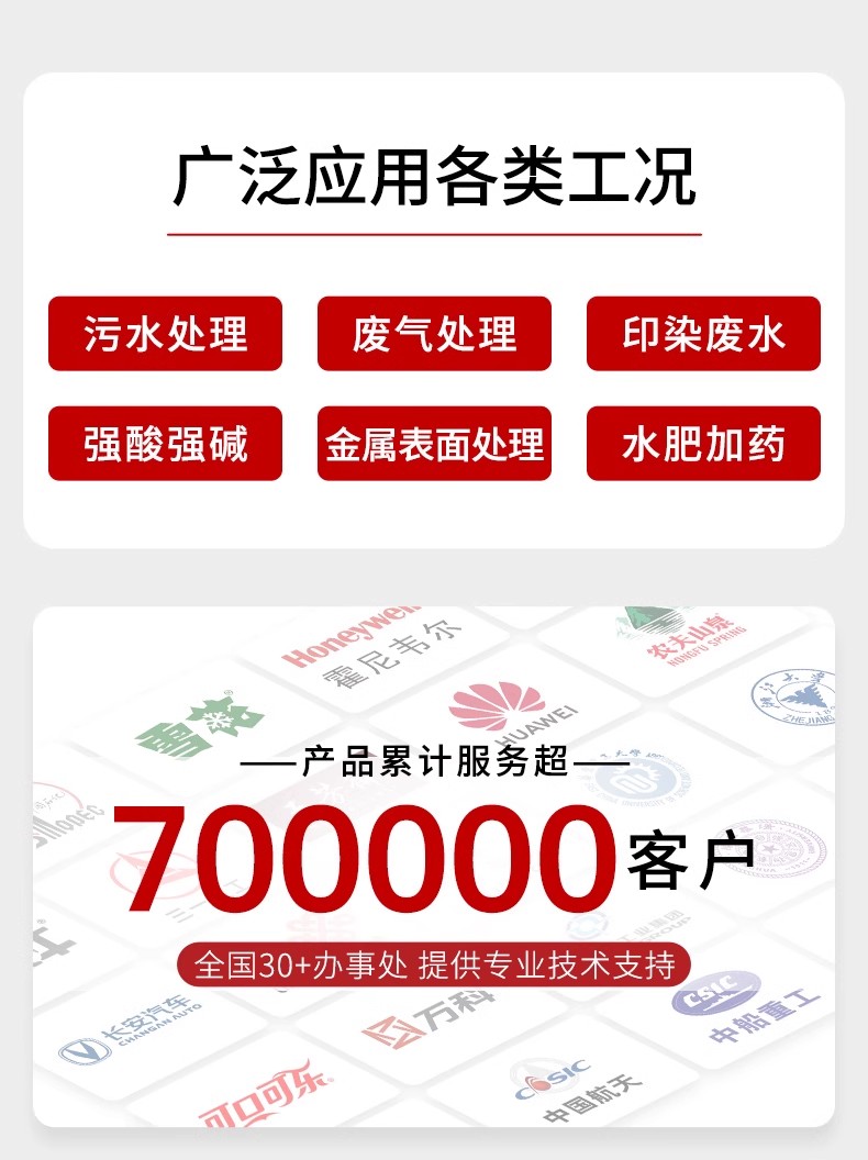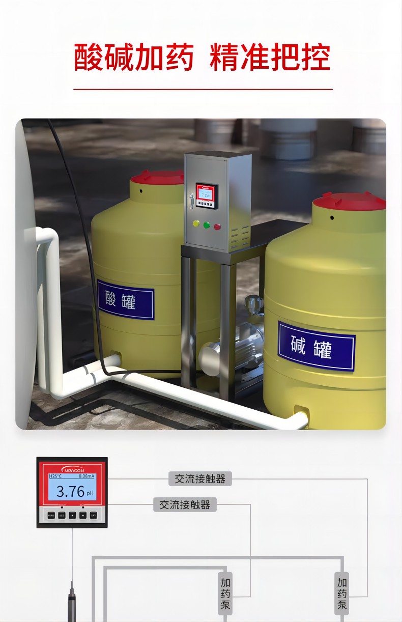 pH/ORP 控制器广泛应用于火电、化工化肥、冶金、环保、制药、生化、食品和自来水等行业,对溶液中 pH 值或 ORP 值和温度连续监测。