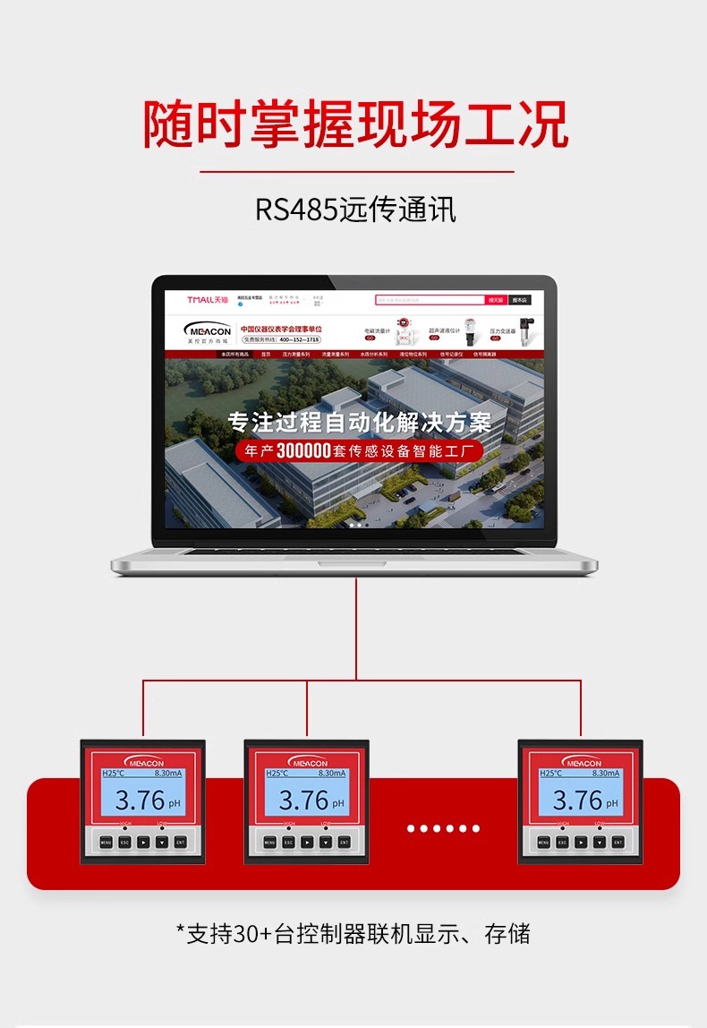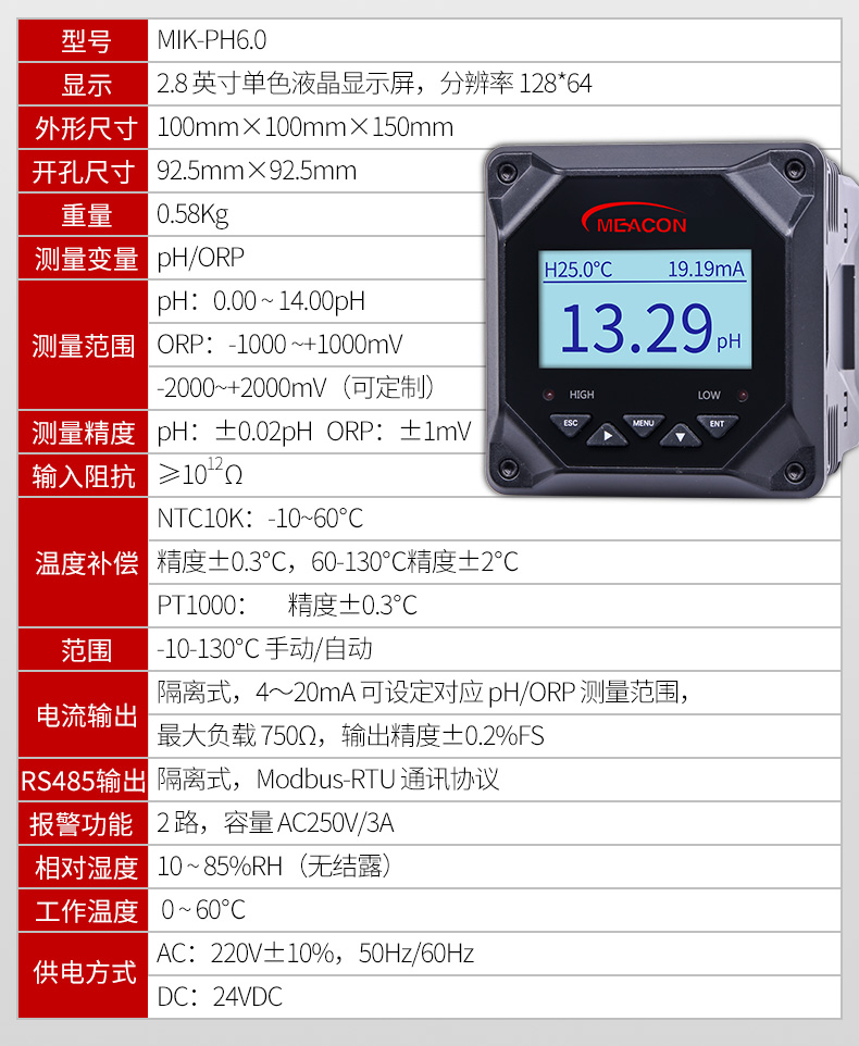 本款PH/ORP测试仪是一款智能在线化学分析仪器之一,是一款广泛应用于火电、化工化肥、冶金、环保、制药、生化、食品和自来水等溶液中PH值或ORP值和温度的连续监测。 连续监测数据通过变送输出连接记录仪实现远传监控与记录,也可以连接RS485接口通过MODBUS-RTU协议可方便联入计算机实现监控与记录。