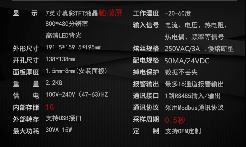 本产品为工业无纸记录仪,配置 3.5 英寸 TFT 真彩全视角液晶显示屏。
