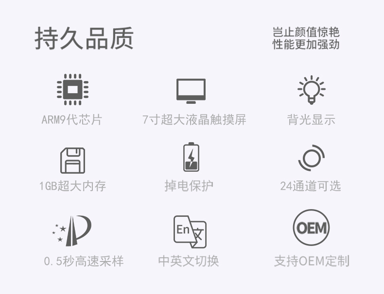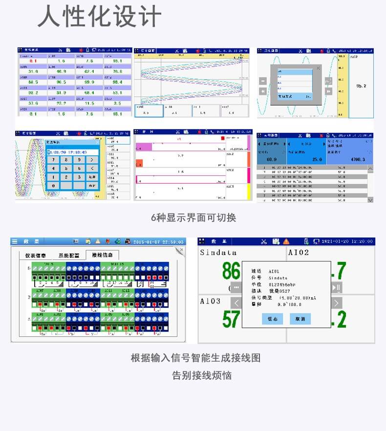 本产品为彩屏无纸记录仪采用高速、高性能32位ARM处理器和5.6英寸LED背光的320*240点阵式液晶显示屏。
