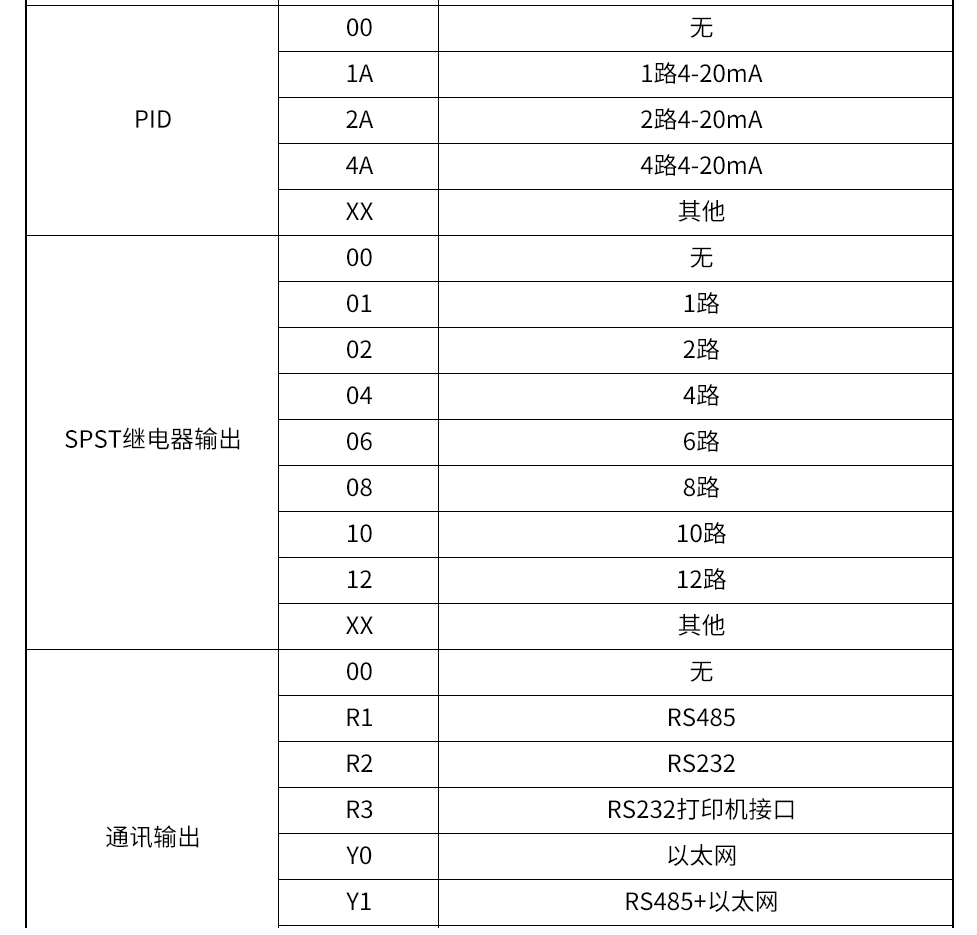 热电偶:B、S、K、E、T、J、R、N、F2、Wre3-25、Wre5-26