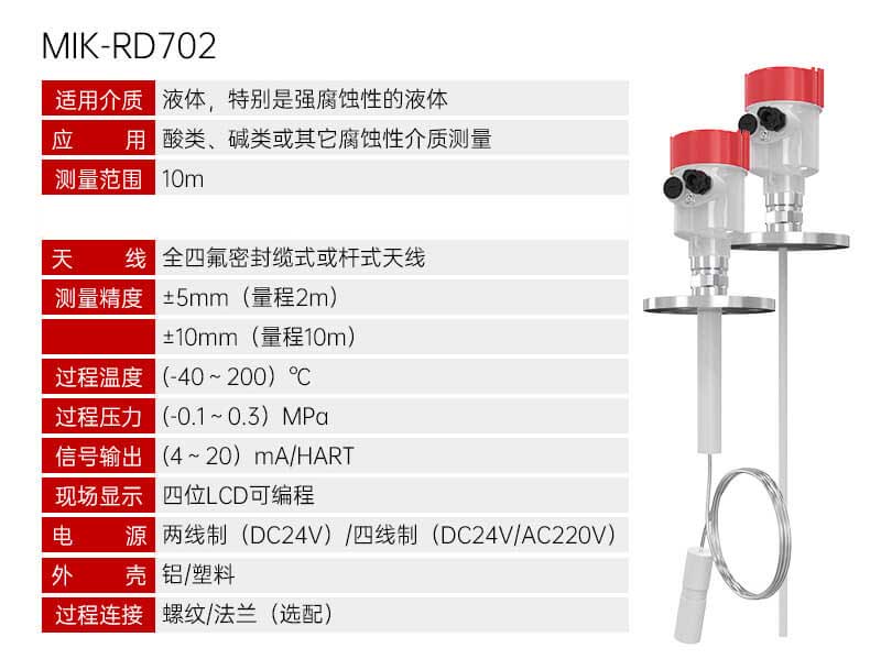 MIK-RD908/909雷达液位计天线发射极窄的微波脉冲