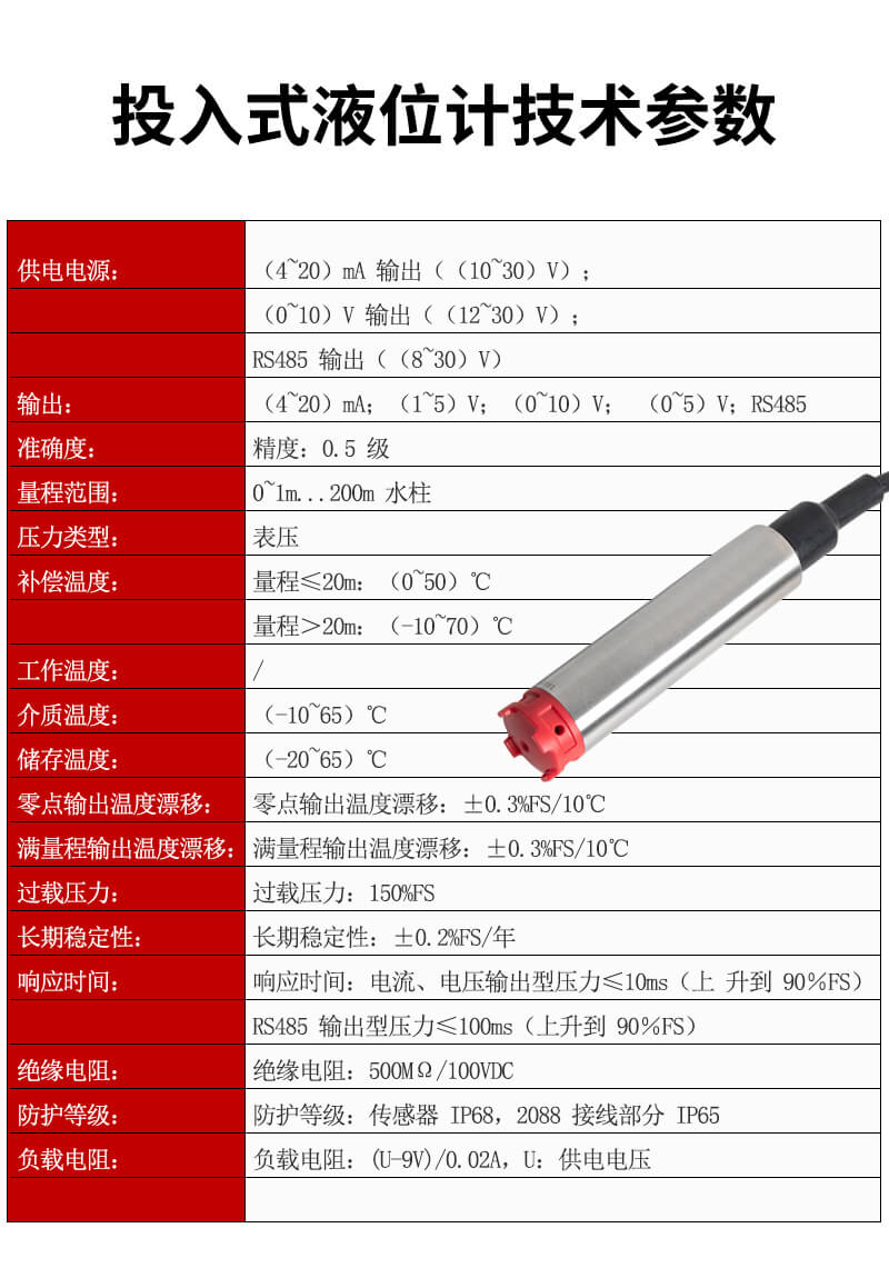 投入式液位变送器由高性能扩散硅压阻式压力传感器作为测量元件...